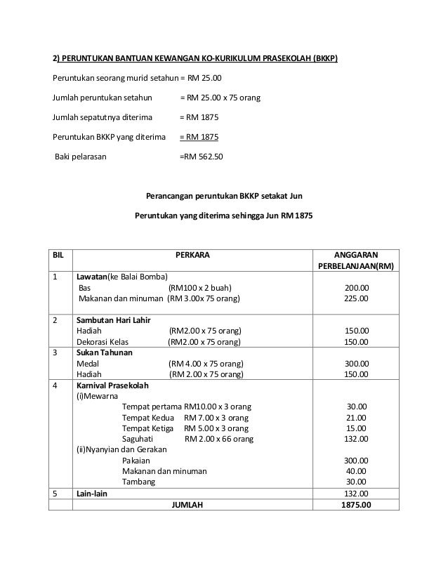 Kertas kerja permohonan peruntukan kewangan bagi kem world jota jamboree on the air dan kursus bencana alam pengakap muda smk pokok sena 2015 a. Belanjawan bantuan pcg prasekolah 2018. Prasekolah mempunyai peruntukan kewangannya sendiri Ia perlu diurus dengan sempurna.